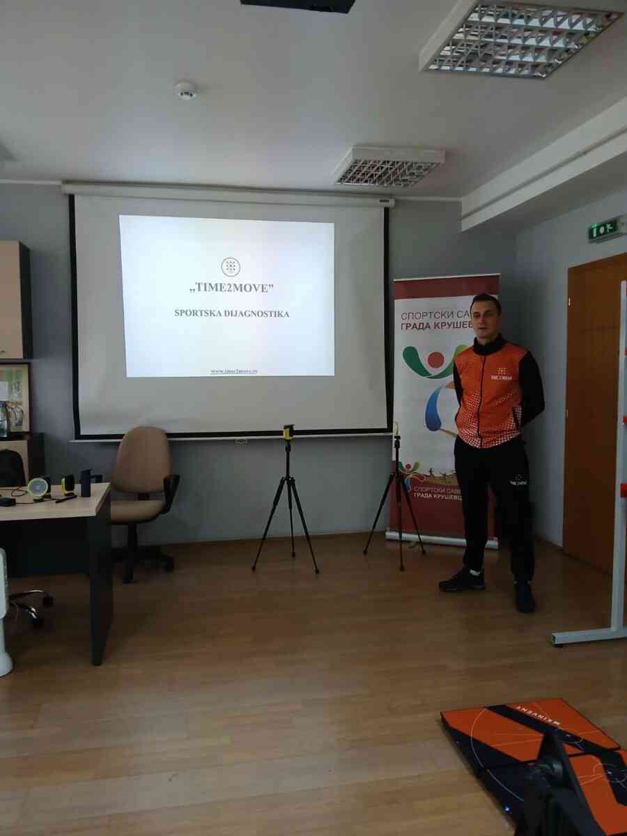 Овом приликом петнаестак крушевачких спортских стручњака упознало се са применом савремених метода спортске дијагностике и едуковало о могућностима практичне примене спортске дијагностике у унапређењу спортско- тренажног рада.